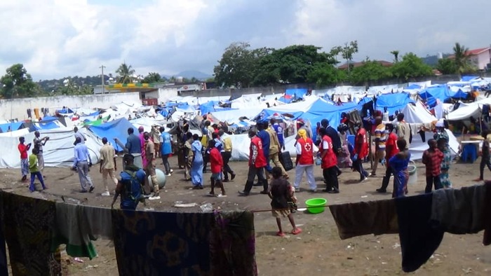 Le deuxième groupe dont le nombre est estimé à environ dix mille se trouve au stade du centre urbain qui est visiblement débordé et où les conditions de vie sont manifestement précaires surtout en ce qui concerne les abris et l'hygiène. Les réfugiés y sont littéralement entassés, sous de petits morceaux de bâches où on ne peut se tenir qu'en position couchée ou assise, et surtout victimes de multiples privations.
