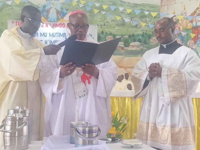 Le moment central de cette liturgie a été le moment de la bénédiction des saintes huiles, signes sacramentels de la vie de Dieu à l’œuvre dans l’Eglise. Il s’agit de l’huile des malades, des catéchumènes et du saint chrême. Ce dernier est utilisé pour le baptême, la confirmation, l’ordination sacerdotale, la consécration épiscopale ainsi que la bénédiction des églises. Ces saintes huiles accompagneront, tout au long de l’année, la vie sacramentelle du peuple de Dieu dans l’Eglise particulière qui séjourne à Ruyigi.