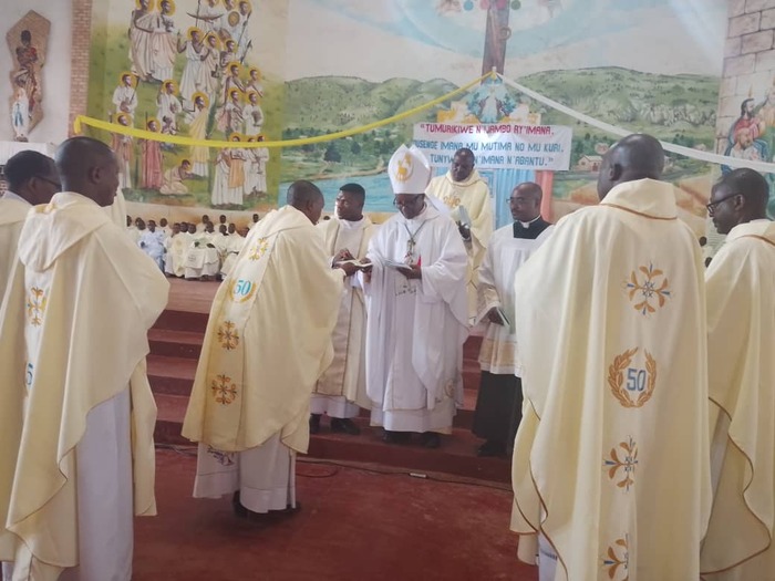 Vendredi, 17 octobre, S.Exc. Mgr Blaise NZEYIMANA, l'Evêque du Diocèse de Ruyigi, entouré des son presbyterium, a procédé à l'ouverture solennelle de l'année pastorale 2025-2026 sous le thème : "A la lumière de la Parole de Dieu, adorons Dieu en esprit et en vérité pour vivre en communion avec Dieu et avec nos frères et sœurs". Les cérémonies de circonstance ont été célébrées dans la cathédrale Saints Martyrs de l’Ouganda.
